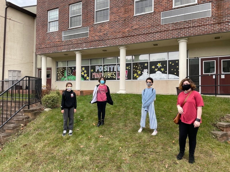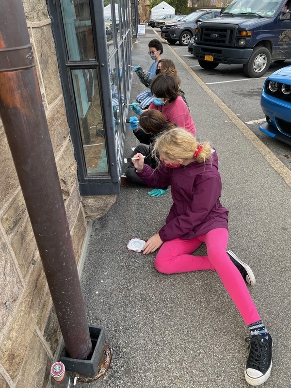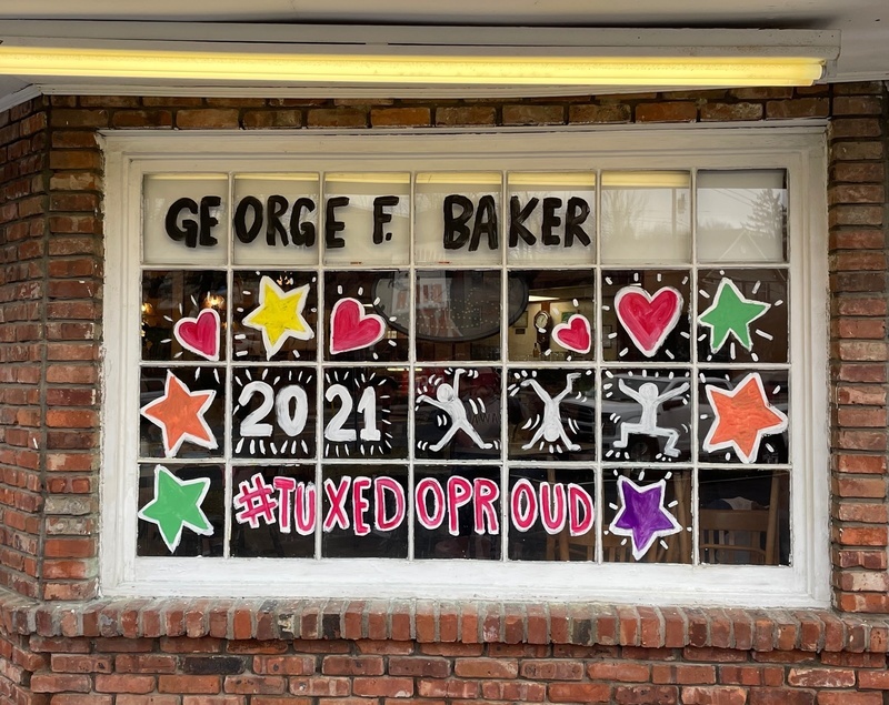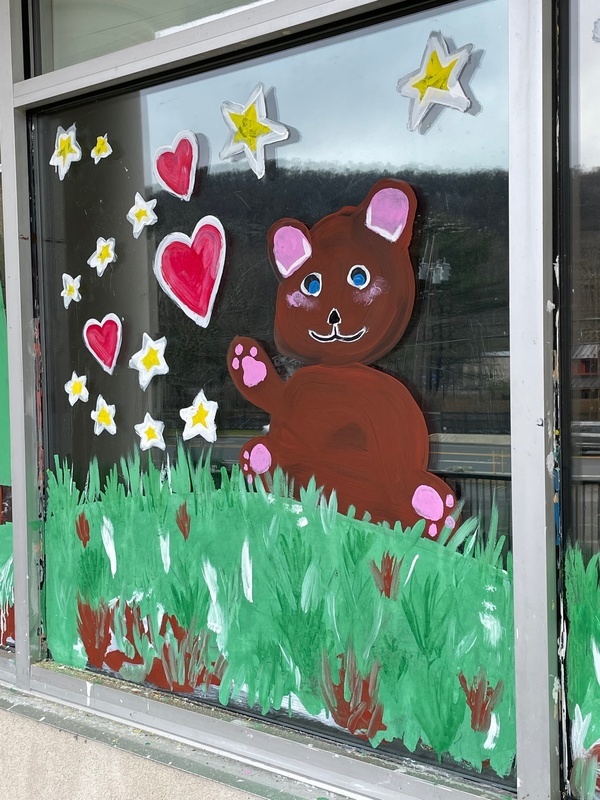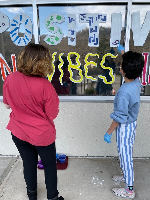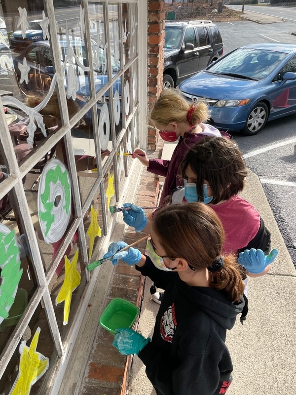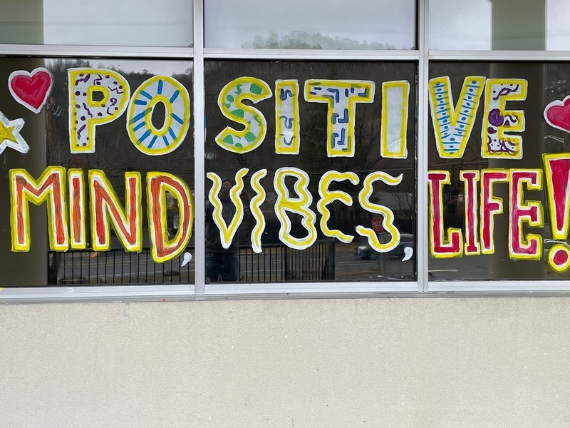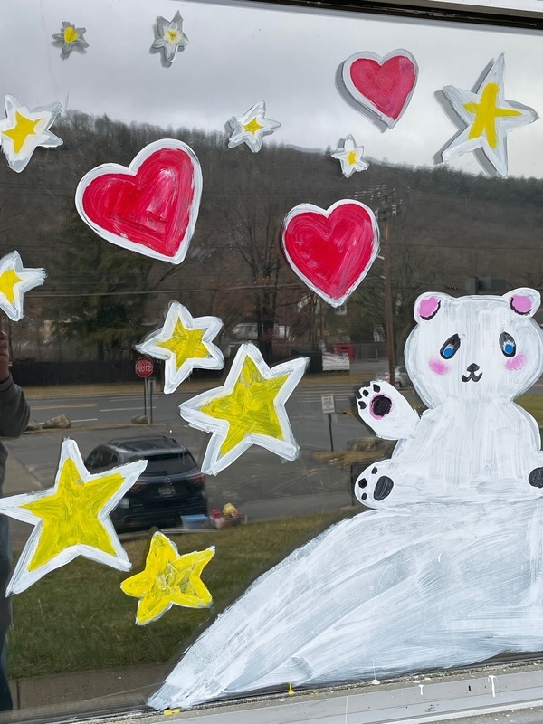 Tuxedo students painted the windows of GGM Bentley Deli and the Orange Top Diner just before the schools had to go fully remote. High school art teacher Mark Stankiewicz then added a few fun touches to refresh the windows to welcome students and staff back to school. Students wrote the words “Positive Mind, Vibes, Life” and painted some winter scenes on the GGM windows and then added fun winter holiday inspired painting on the diner window. The updates added fun dancing figures, hearts, and stars as well as a “Welcome Back” on the front doors of the school.