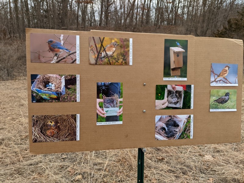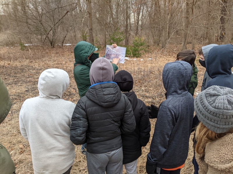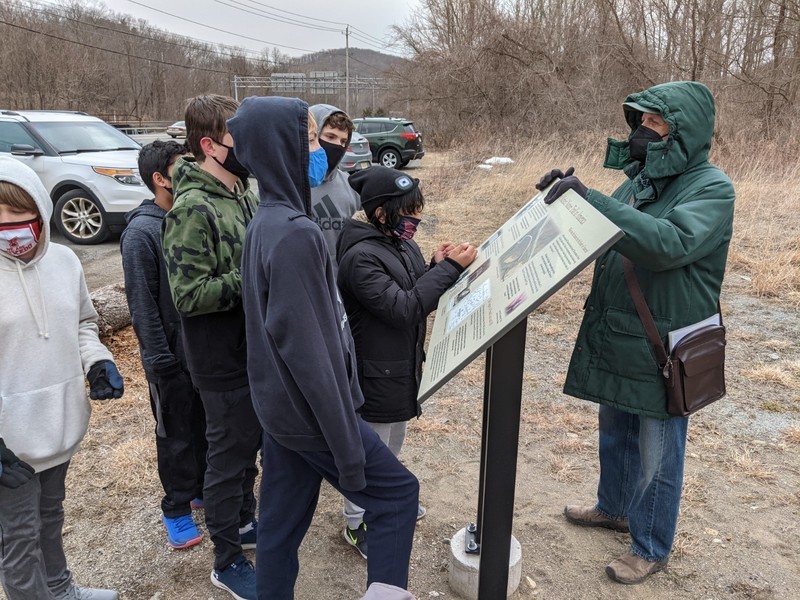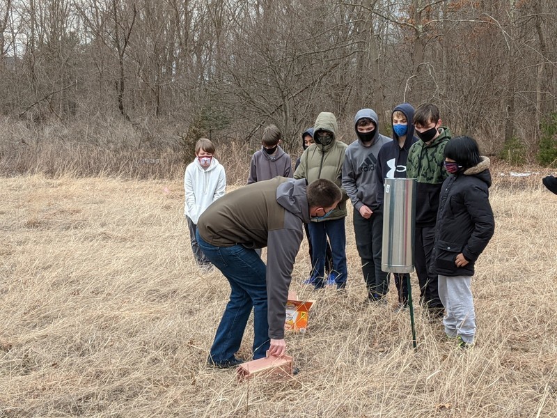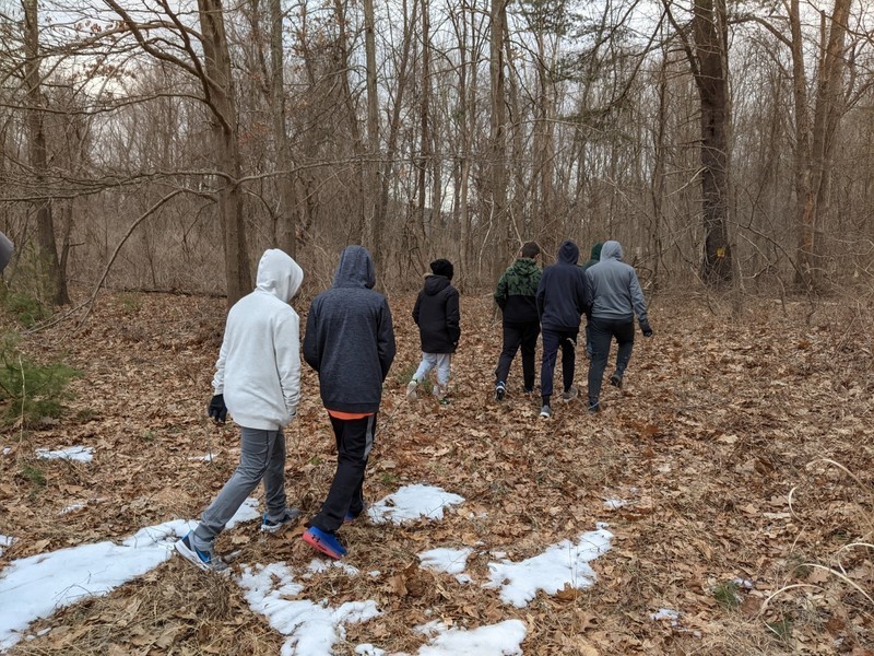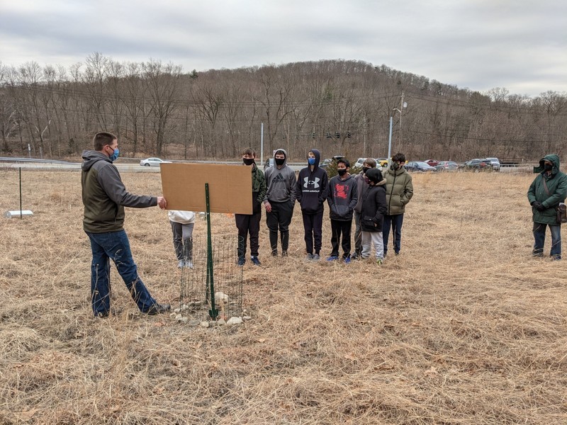 On Tuesday, March 16th, members of the National Junior Honor Society went with Kelly Spranger and Louise Maretzo to help the PORE committee of Tuxedo install bird boxes. Sue Scher and Ginny O'Neill were also present and representing the PORE group (Parks Outdoor Recreation Entertainment). Under the direct supervision of Tom Fuller, our local bird expert, they installed 2 bird boxes (that were assembled by the students previously) in the lower field of the original Study of Insects Station. This area is being revitalized by the Tuxedo organization to become a Pollination Station for butterflies and other pollinators. The field will also be a home to these bird boxes which hopefully will attract blue birds which are endangered. Donald "Doc" Bayne, the President of the Friends of Sterling Forest State Park (and our local expert on "all things nature"), did a short presentation and led the students on a hike to the site and explained what it used to look like through photographs of the original area. The PORE committee in Tuxedo is actively looking for volunteers to rid the field of invasive plant species and to monitor the bird boxes. These efforts will help our Pollination Station grow in Tuxedo Park. If any students would like to participate in future pollinating activities, please feel free to contact Kelly Spranger at kellyspranger@msn.com or Ginny O'Neill at goneill@rcls.org.
