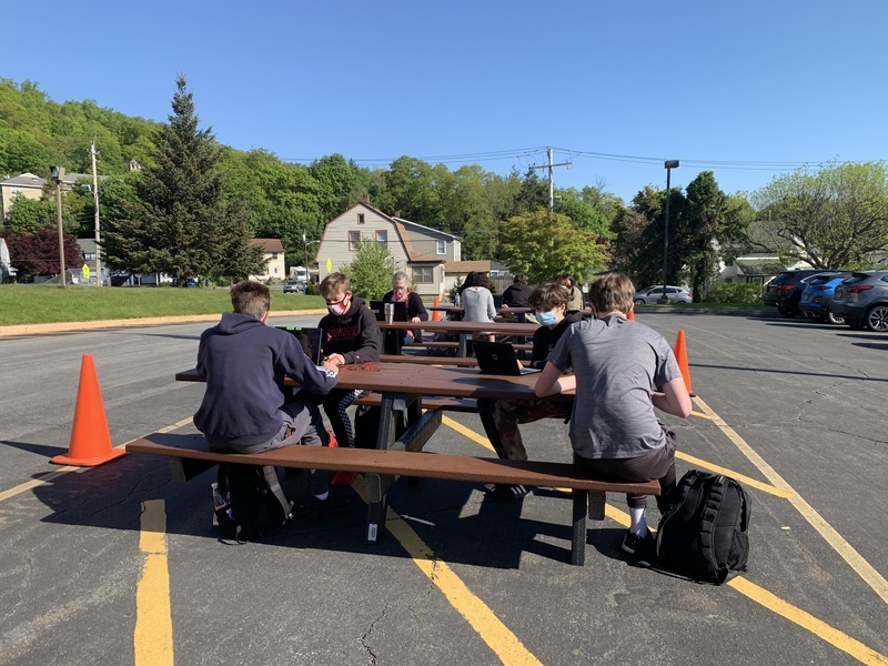 Welcome to our newest classroom! Check out Ms. Castellanos with hybrid instruction outdoors.