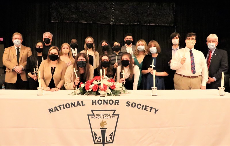 Service, Scholarship, Leadership and Character are the tenets of the Honor Society. The National Honor Society and National Junior Honor Society inducted 28 members on Thursday, November 18, 2021. The event was hosted by Advisor Ms. Jones, President Marisa Leo, Vice President Zoe Vaught and Secretary/Treasurer Eliza Vaught. The guest speaker was Ms. Jenna Park. Superintendent Mr. White, Board of Education President Mr. Castricone and Principal Mr. Reese all gave a warm welcome. Congratulations!