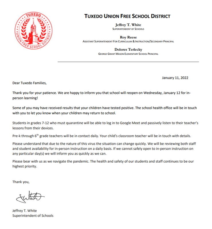 Return to In-Person Instruction 1-12-22