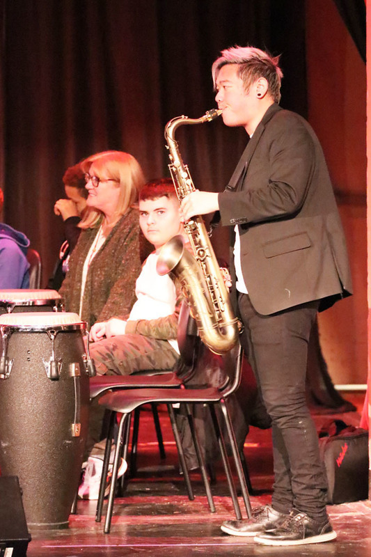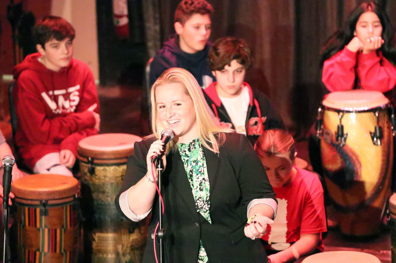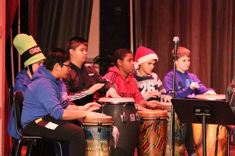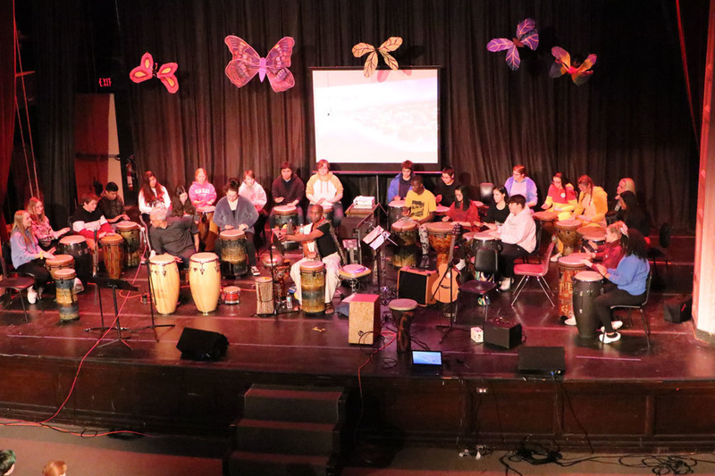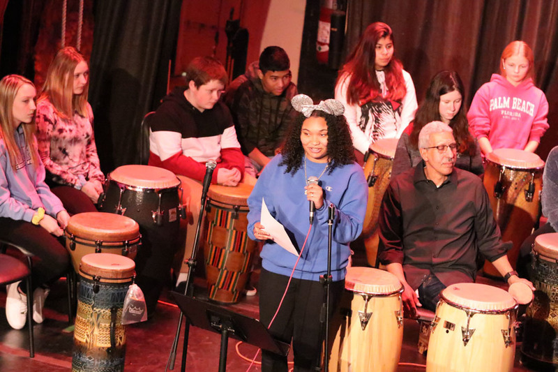 On Wednesday, December 18th, 2019, the Tuxedo Union Free School District held its first annual D.R.U.M. Concert with Grammy Award-winning artist, Jeff Haynes.  The D.R.U.M. acronym stands for Discipline, Respect, Unity and Music and Mr. Haynes has worked with many school districts in the past promoting these values with students.  The concert was the culmination of a multi-content collaborative effort with our English, Social Studies and Music programs and it included students from 5th grade all the way to 12th grade as they performed not only on the drums, but also through poetry, the spoken word and song.